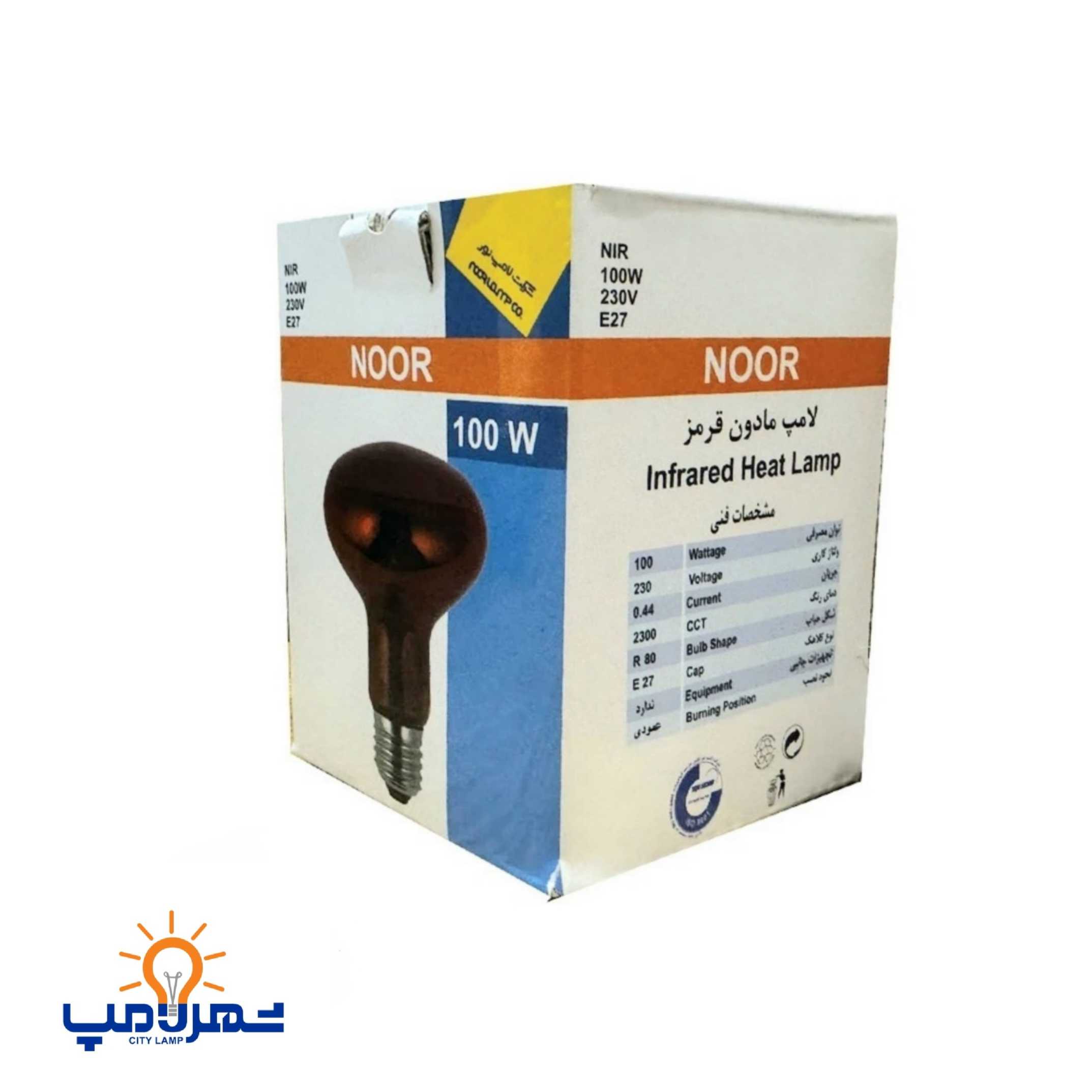 لامپ حرارتی مادون قرمز 100 وات برند لامپ نور به عنوان یک لامپ گرمایشی برای پرندگان و جوجه‌های تازه متولد شده طراحی شده است. این محصول با مشخصات زیر در دسترس است: